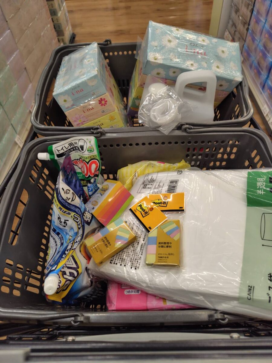 掃除用品・事務用品は壬生のカインズとネット通販のたのめーるで購入しています。